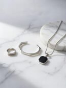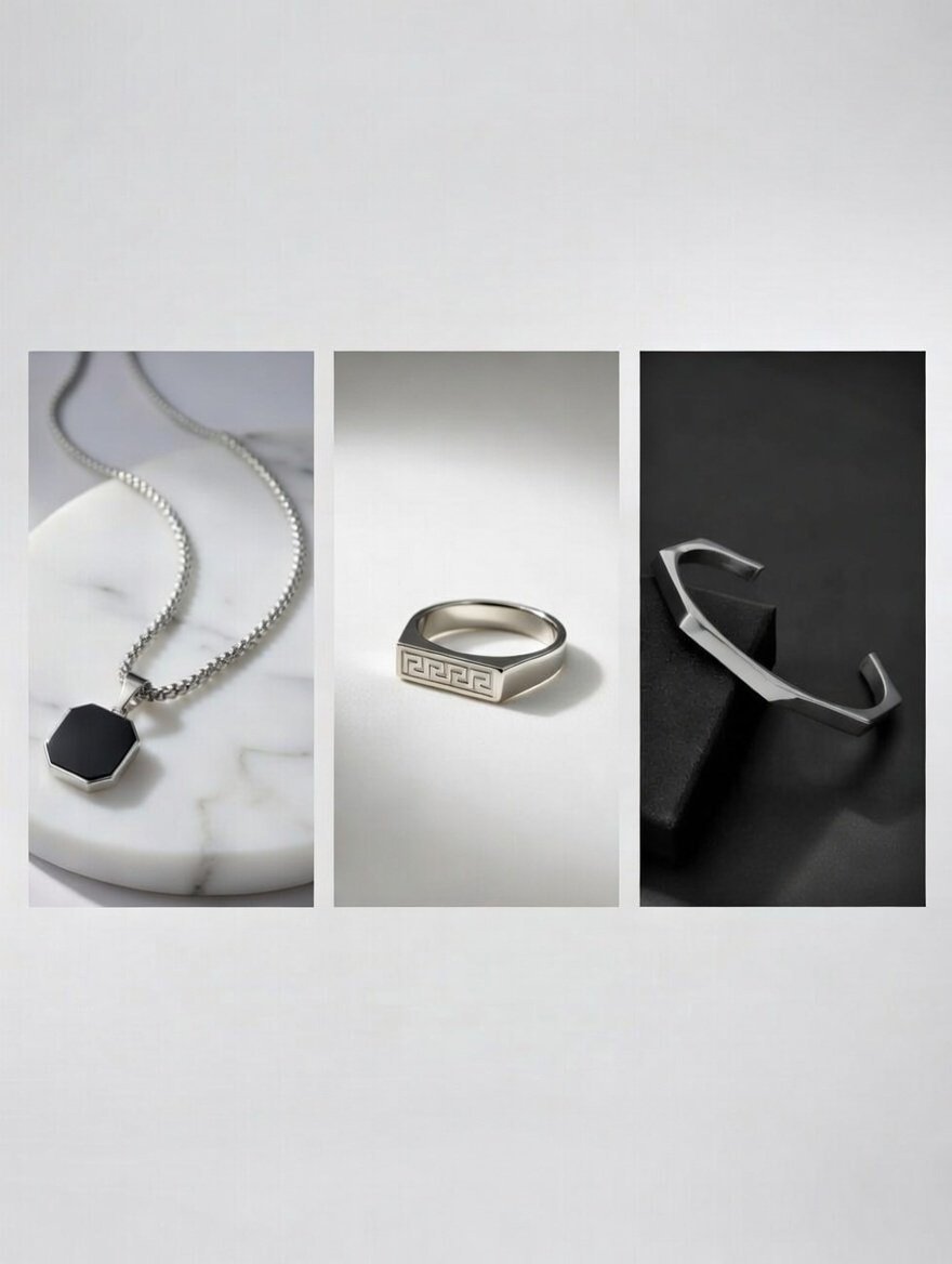 BLACK SILVER MENS LOCKET , MENS RING SILVER AND SILVER HEXAGON HANDCUFF