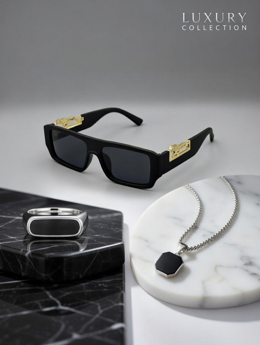 PANTHER SUNGLASSES,BLACK SILVER RINGS AND MENS LOCKET