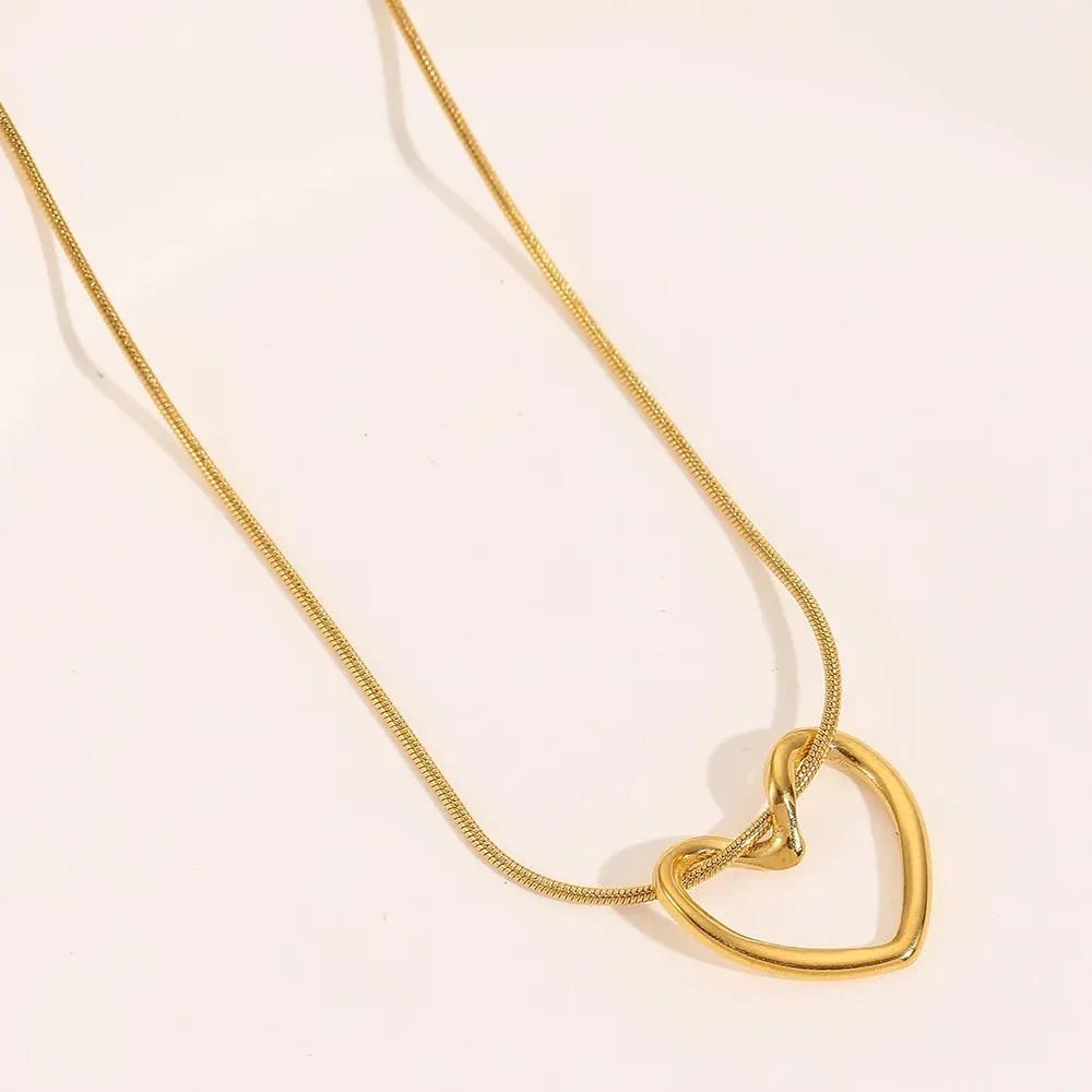 This elegant golden necklace features a sleek, double‑lined heart pendant hanging from a delicate snake‑chain. The minimalist design makes it a versatile accessory for everyday wear or special occasions. Perfect for gifting or adding a touch of style to any outfit.